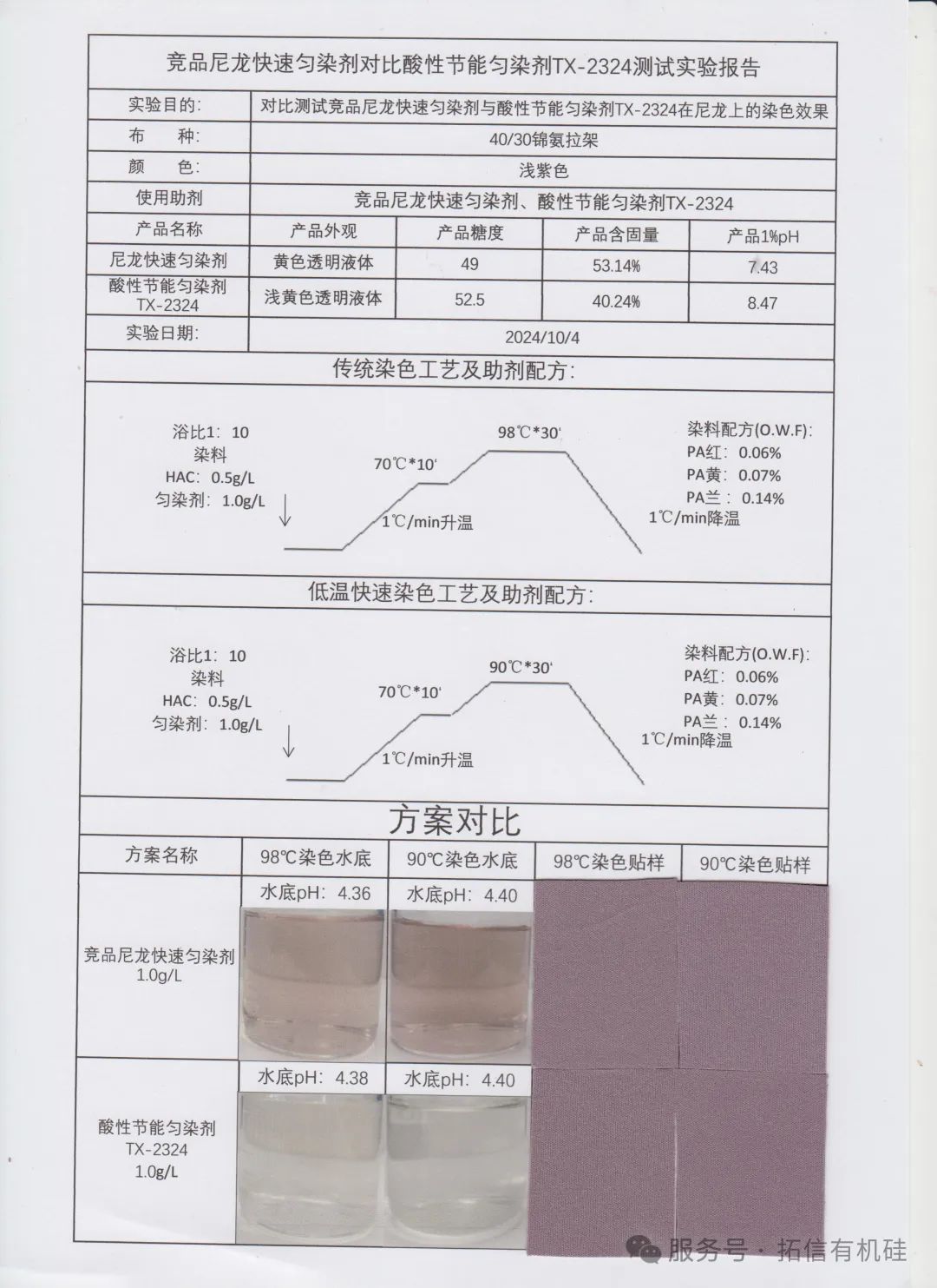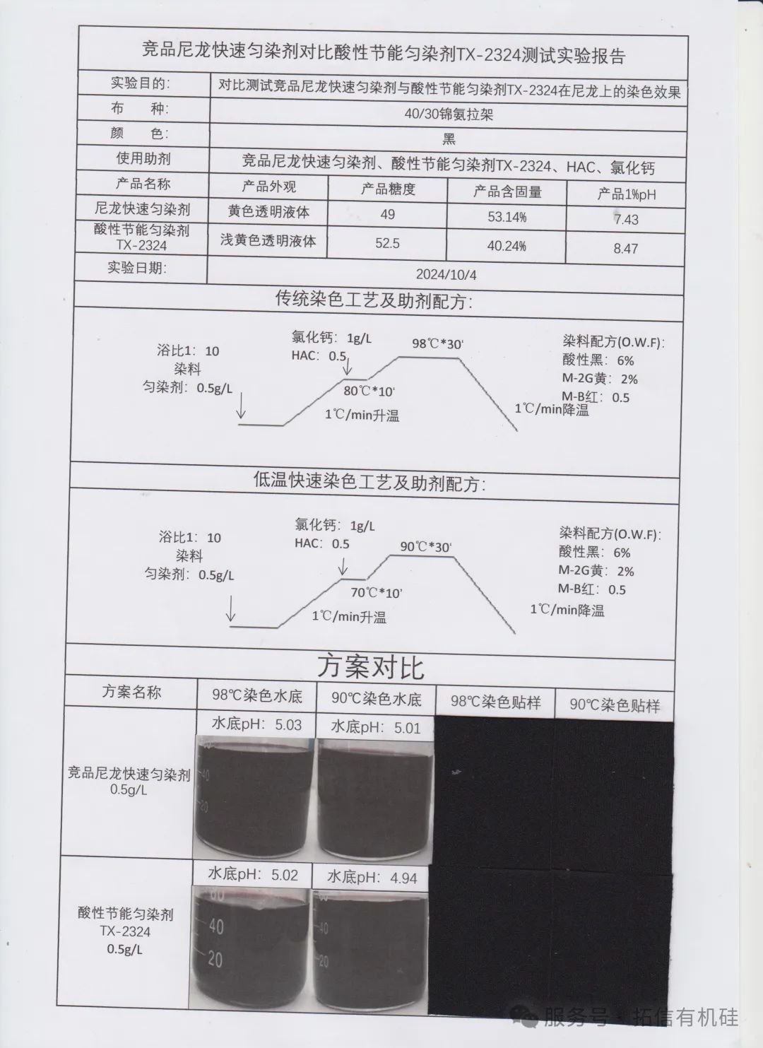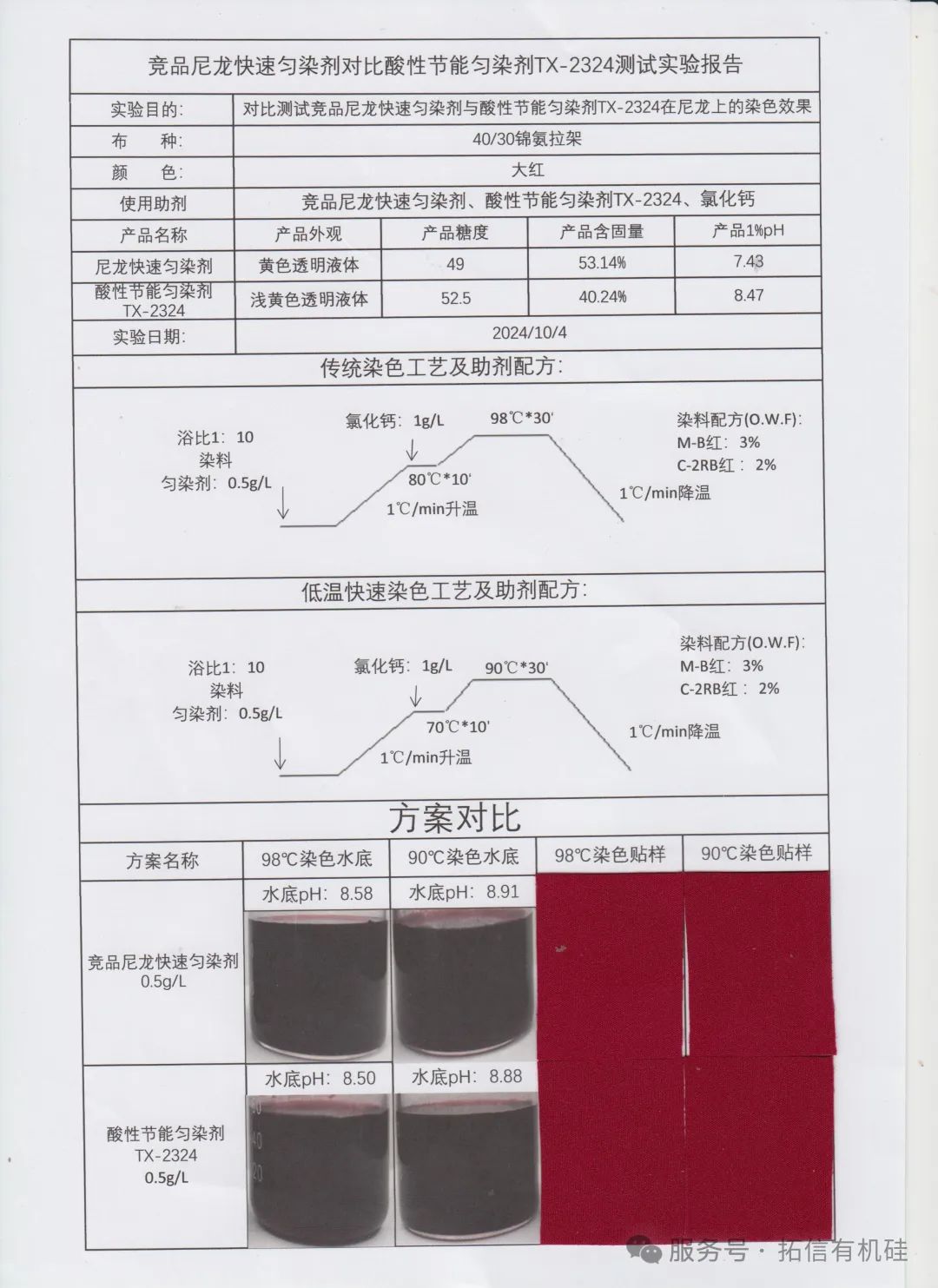 拓信有机硅潜心研发,不断测试调整,整合染厂需求,新推出符合客户心仪款纺织染色助剂: