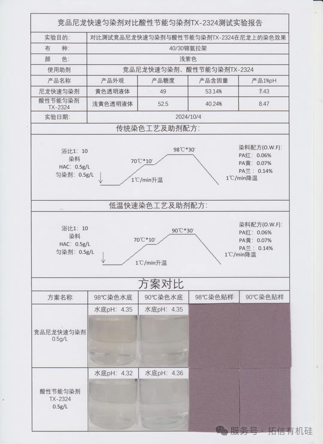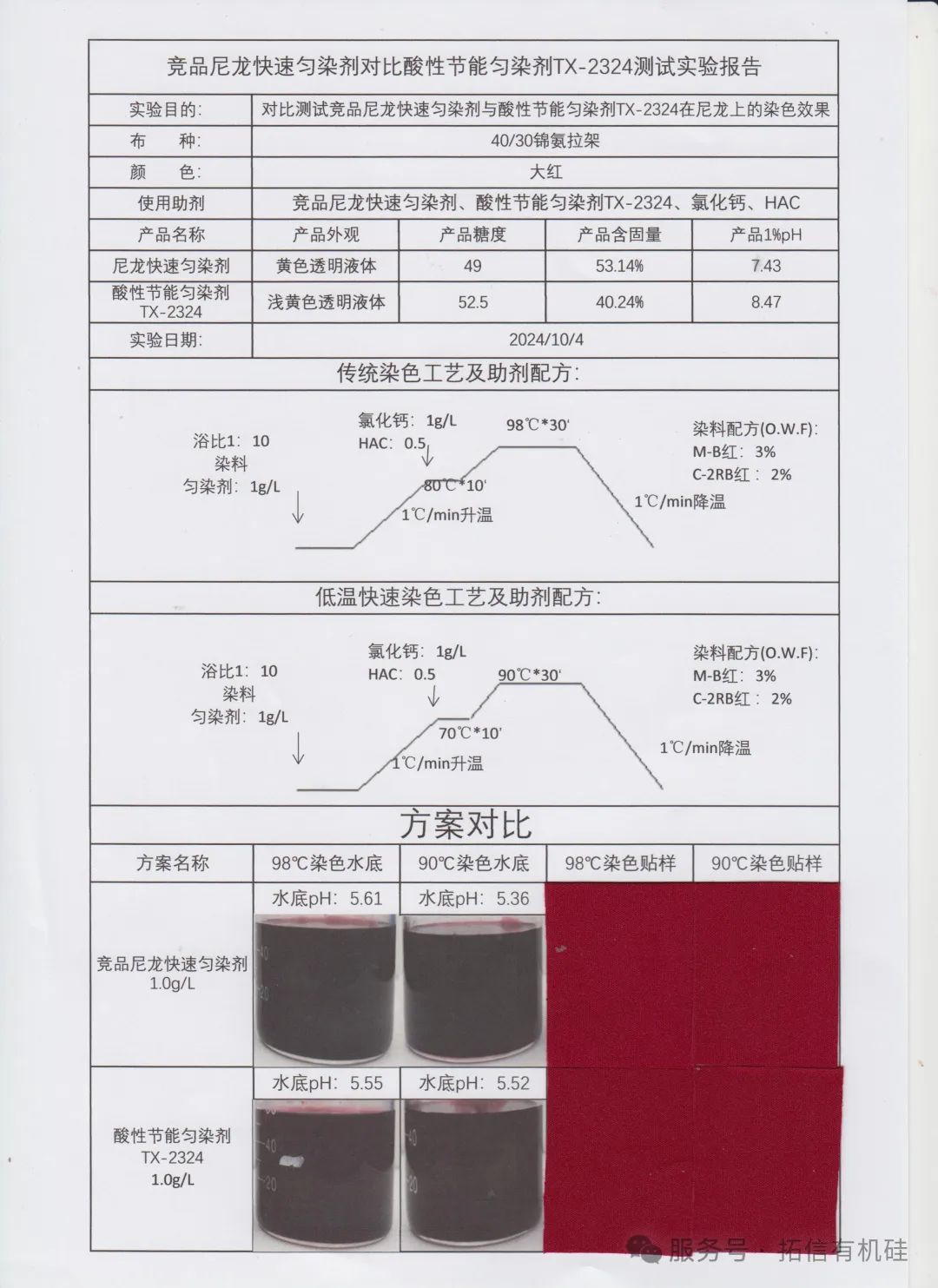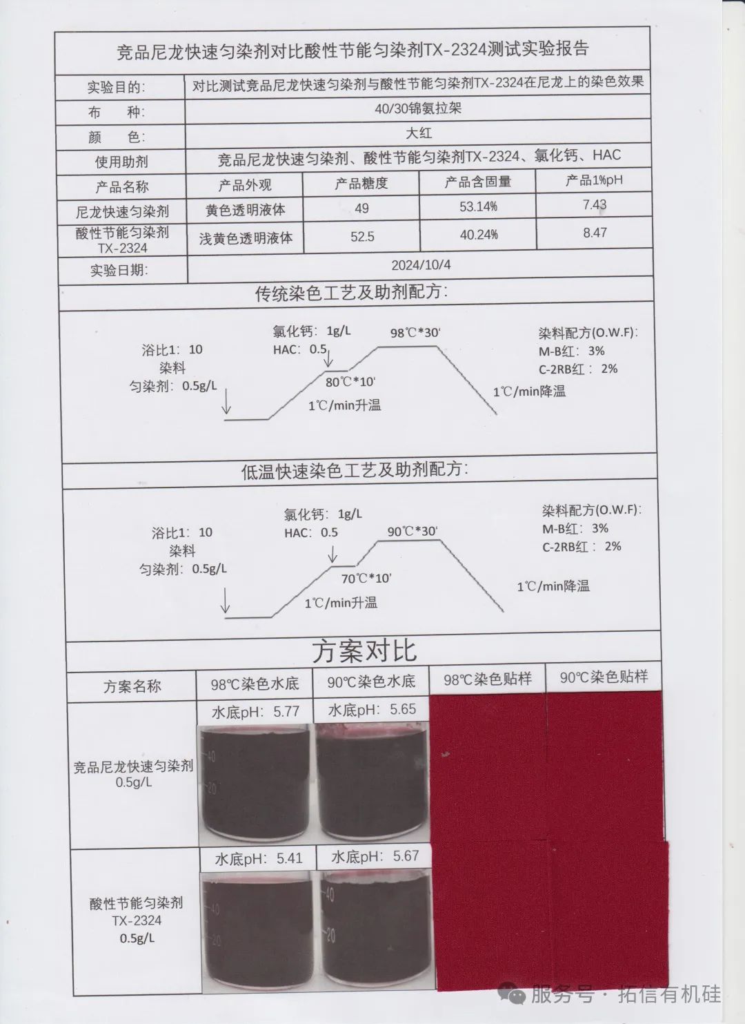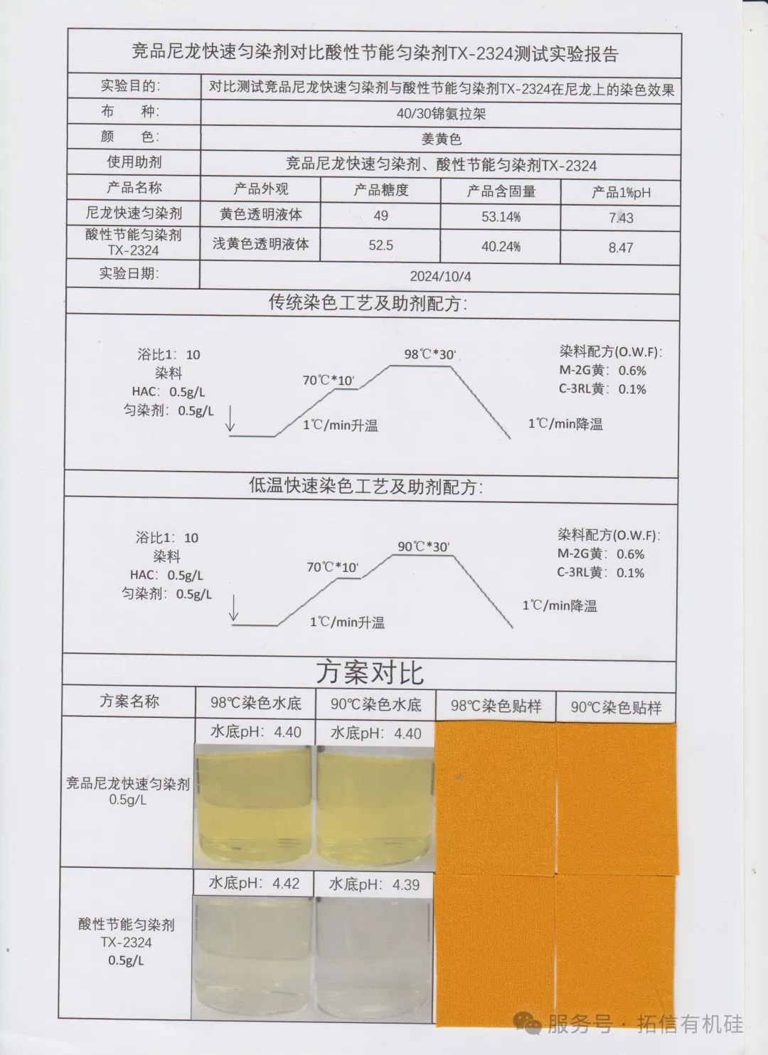 拓信有机硅潜心研发,不断测试调整,整合染厂需求,新推出符合客户心仪款纺织染色助剂: