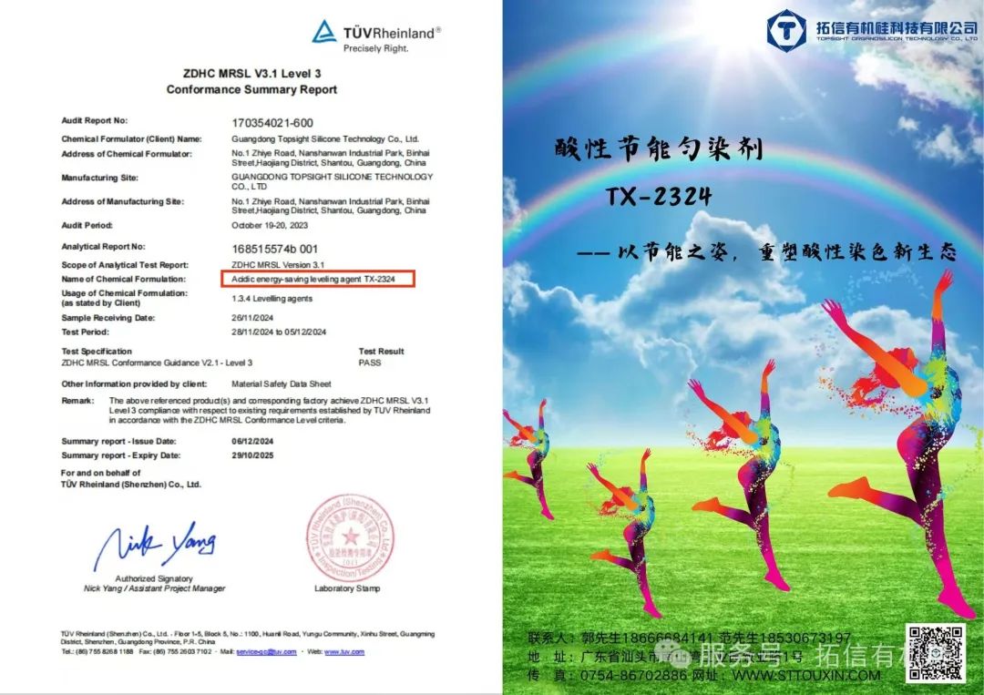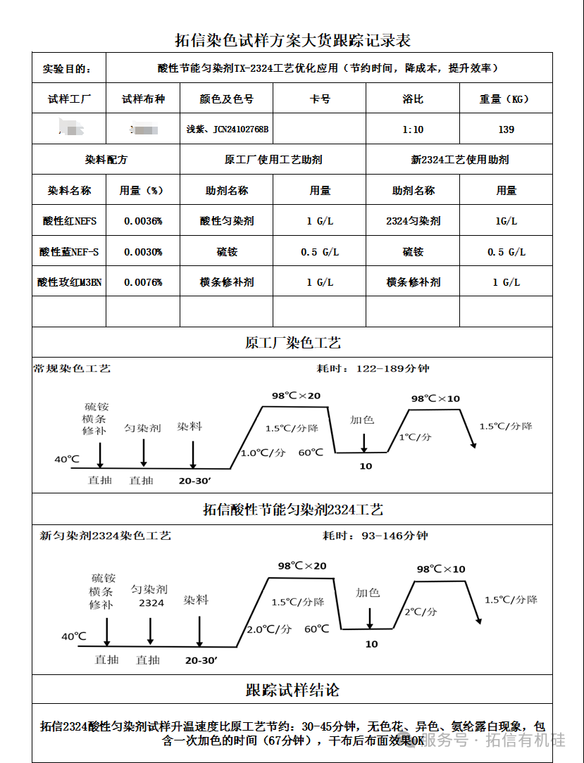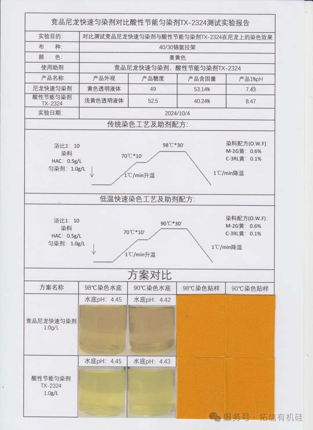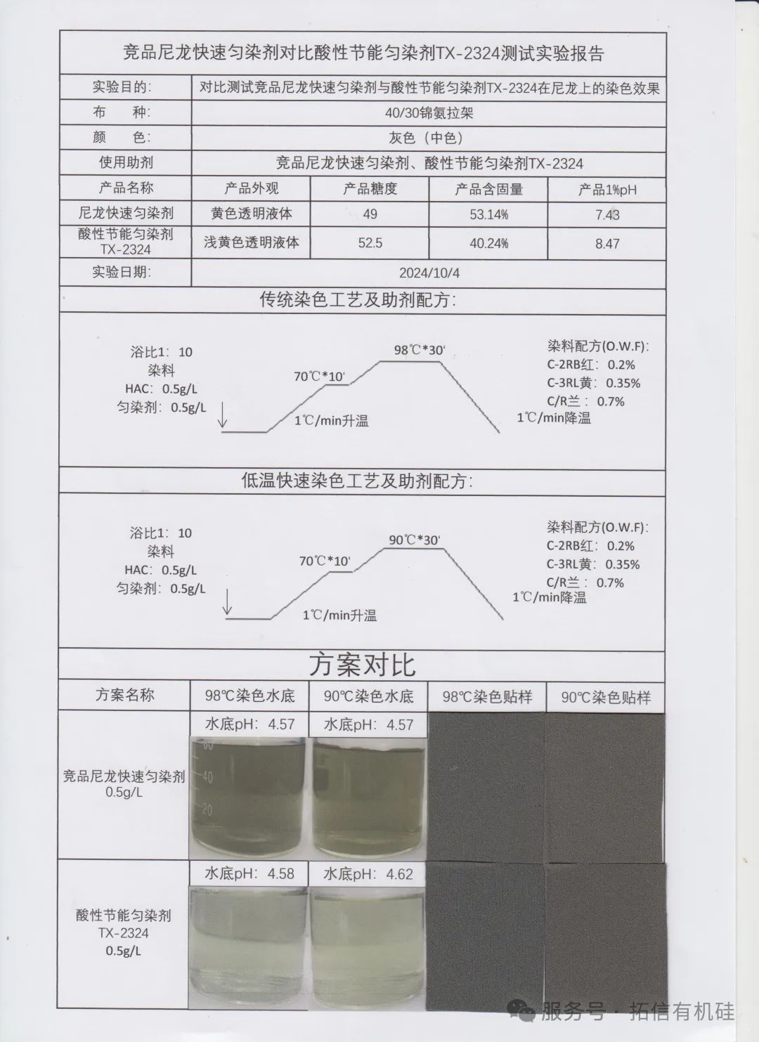 拓信有机硅潜心研发,不断测试调整,整合染厂需求,新推出符合客户心仪款纺织染色助剂: